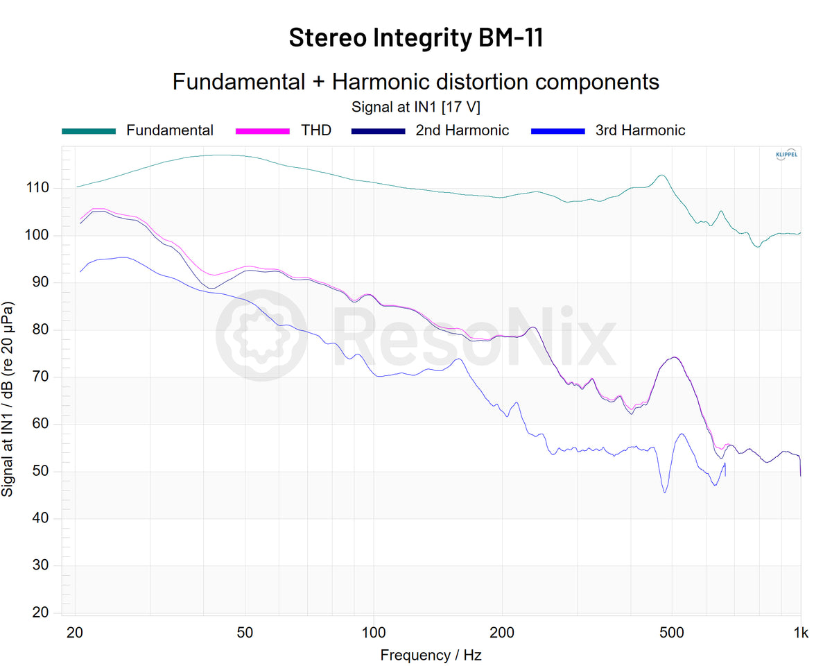 In this sample and under these test conditions, achieving clean output in its intended frequency range is not realistic. Distortion is already very high at minimal excursion, and by the near-limit sweep of 17 V the driver is around 45 percent THD at 25 Hz with only about 9 mm one way at 20 Hz. Frankly, I couldn't imagine using this driver in any scenario as distortion is just way too high, so I won't waste anyone's time trying to come up with a use case suggestion for it.